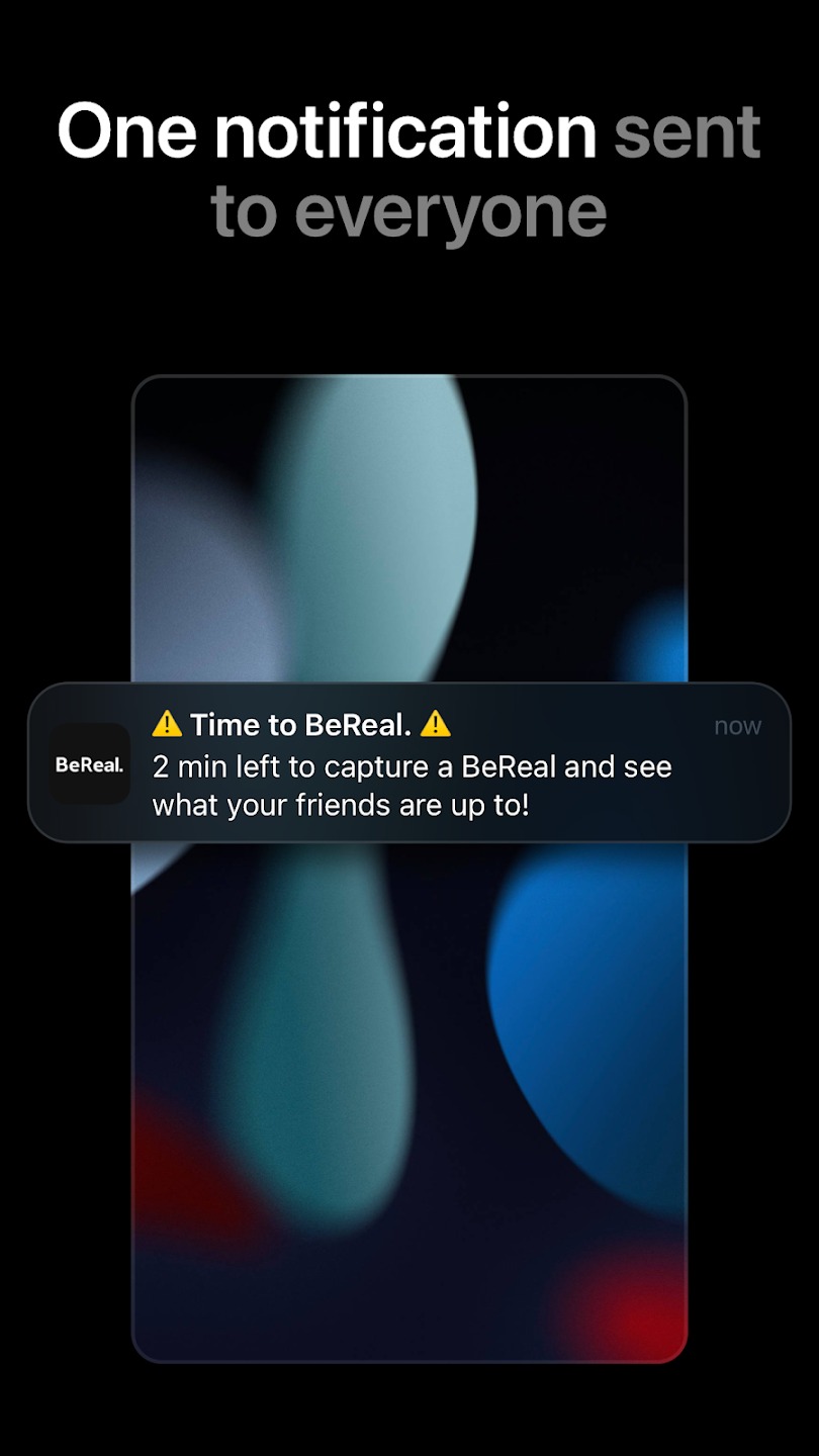 Users of the app receive notifications at odd times throughout the day asking them to post a real-time snapshot of themselves. Notably, the software enables the phone’s front and back cameras to take a photo simultaneously. Users have exactly two minutes to capture and share a photo of whatever they are doing at the time.
